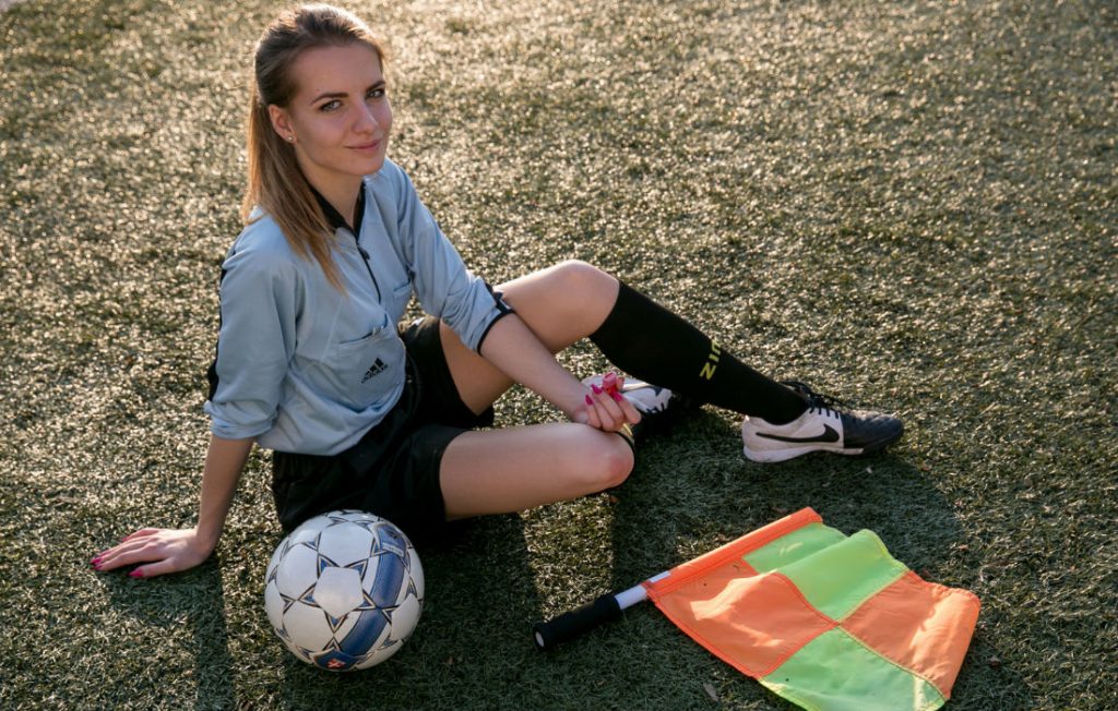 The Polish beauty wants to use her looks to help her become the top football referee in the world.